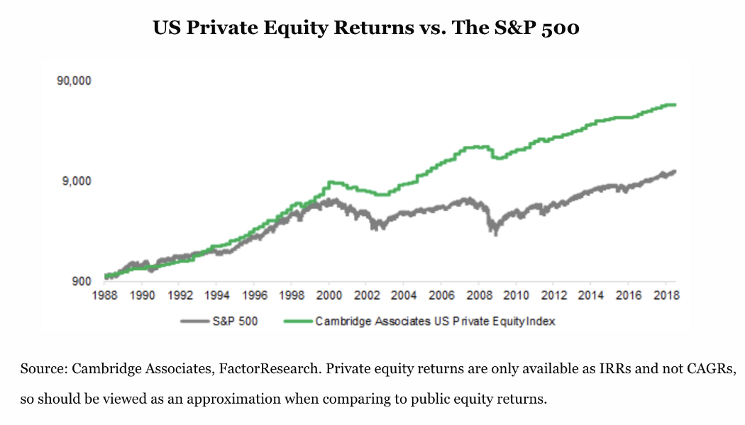 Private equity may provide greater capital appreciation than publicly traded stocks. With fewer regulatory requirements than public entities, private businesses are not at the mercy of quarterly earnings results which drive short-sighted decision making at public companies. And by having the ability to directly own and control their portfolio companies for long periods of time, private equity managers can reap the rewards of their value creation efforts and wait out adverse market conditions when preparing to exit their investments.